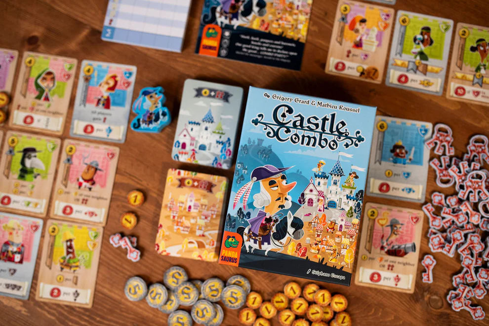 Welcome to the vibrant, medieval world of Castle Combo, a fast-paced, tableau-building card game from Pandasaurus Games that invites players to craft their ultimate 3x3 grid of quirky characters, from royal guards to plague doctors, in a strategic quest for victory. Designed by Grégory Grard and Mathieu Roussel, Castle Combo combines simplicity with deep, engaging gameplay, making it a must-have for family game nights, competitive sessions with friends, or anyone seeking a quick yet thought-provoking board game experience. Perfect for 2-5 players aged 10 and up, this game delivers a delightful mix of strategy, luck, and replayability in just 20-30 minutes.