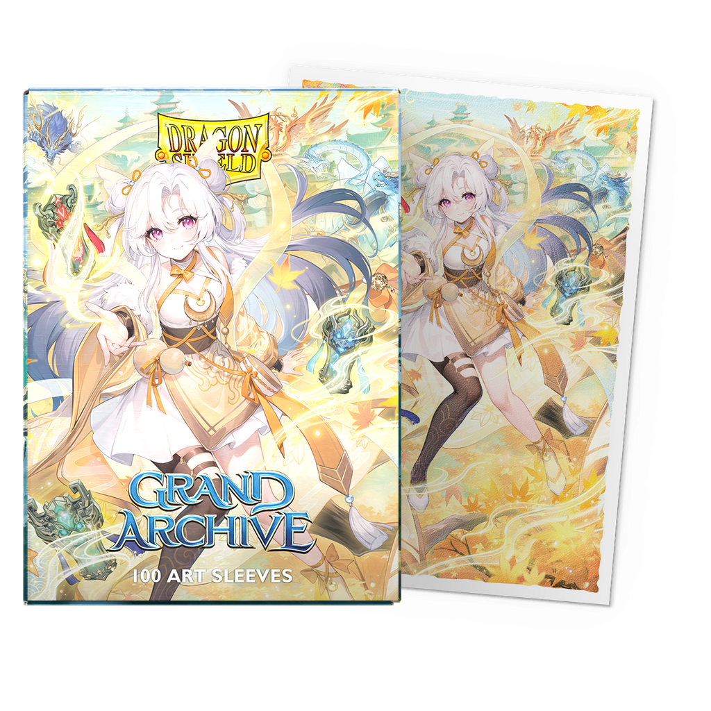 The Sleeves come in a reusable cardboard box containing 100 standard size sleeves for trading cards measuring up to 63x88 mm's (2½"x3½"). Great for TCGs like MTG, Pokémon, Lorcana and – of course – Grand Archive!