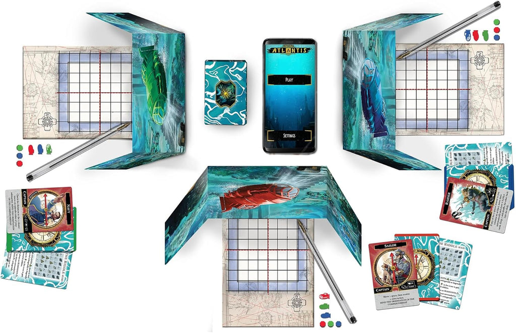 In this highly interactive game of tactical movement and clever deduction, players captain powerful submarines in search of the lost city of Atlantis. The ocean is vast and ever-changing, and your opponents are just as determined to uncover the truth as you are. Each turn creates new opportunities — and new challenges — as players analyze sonar readings, piece together clues, and navigate treacherous waters on their quest for discovery.
