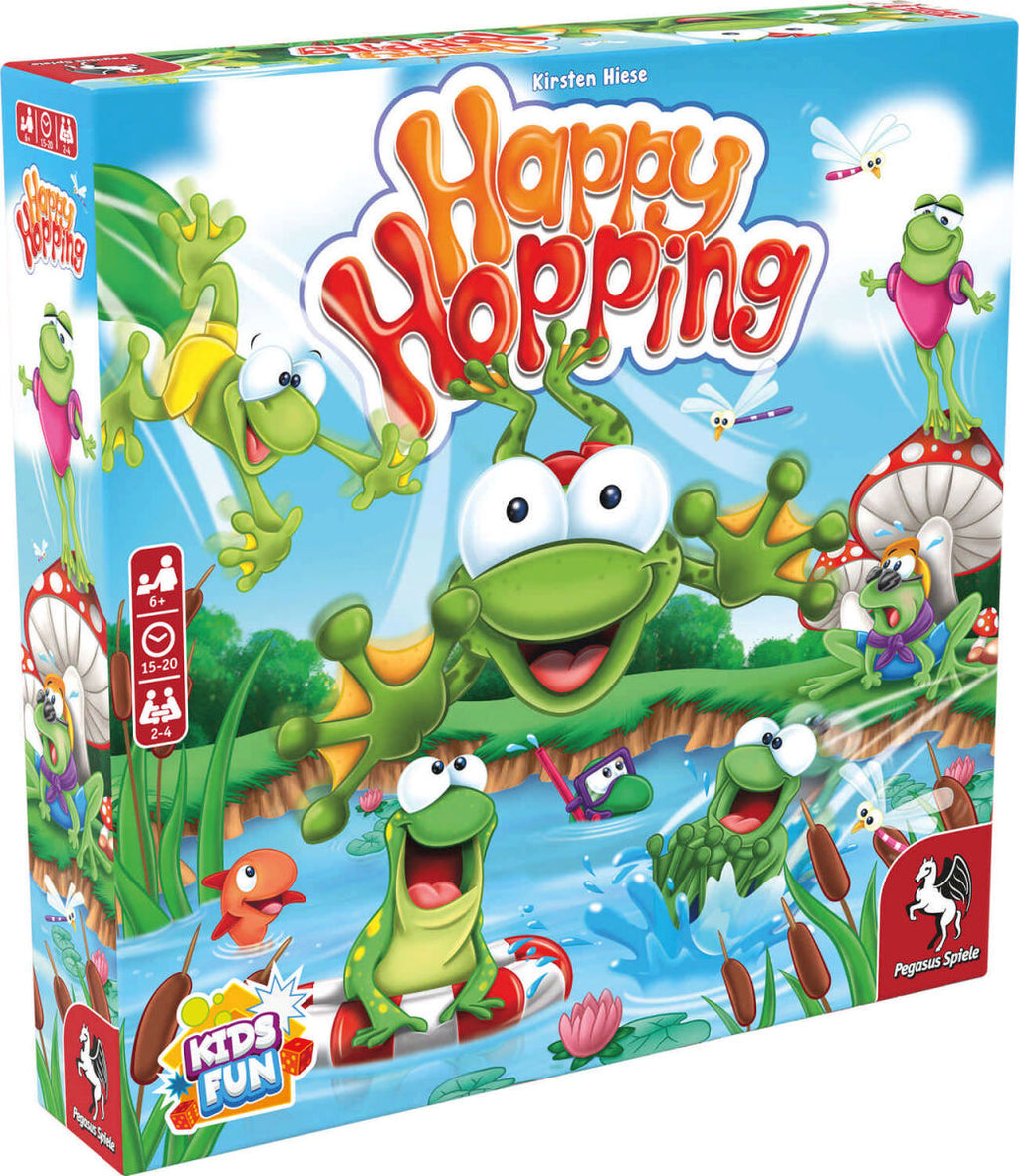 Dive into the lively world of Happy Hopping, a delightful family board game from Pegasus Spiele that brings fun and excitement to game night! Designed for 2-4 players ages 6 and up, this fast-paced game delivers 15-20 minutes of engaging gameplay, perfect for kids and adults alike.