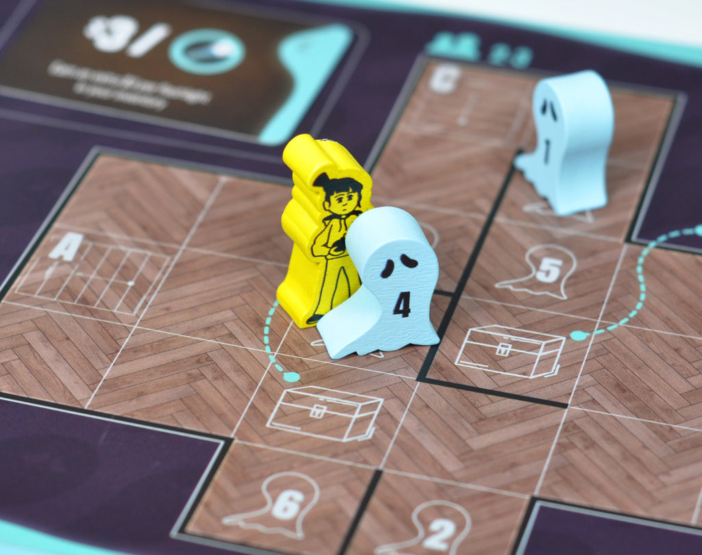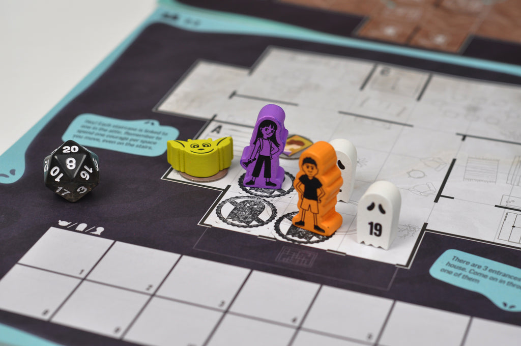 Over the course of the game, each player builds and improves a “ghost hunter” character, balancing courage, inventory, and strategic movement both outside and inside the manor.